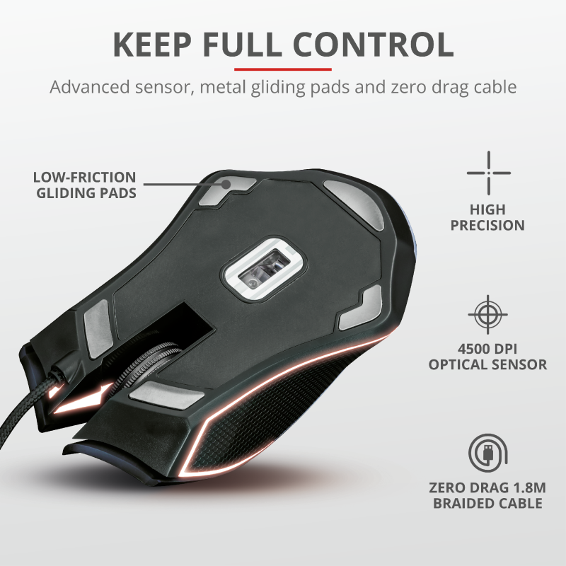Con 7 botones programables, iluminación RGB ajustable, un conmutador de ppp que permite elegir la velocidad del cursor, y un diseño ambidiestro perfecto para gamers zurdos o diestros, el GXT 160X Ture de Trust es un auténtico ratón gaming totalmente personalizable.