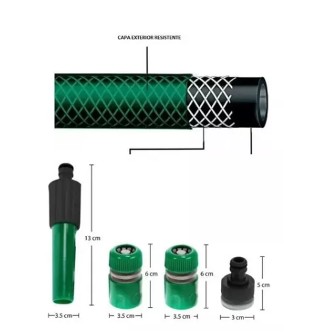 Manguera multiuso para riego jardin 1/2 pulgadas 10 metros + adaptadores