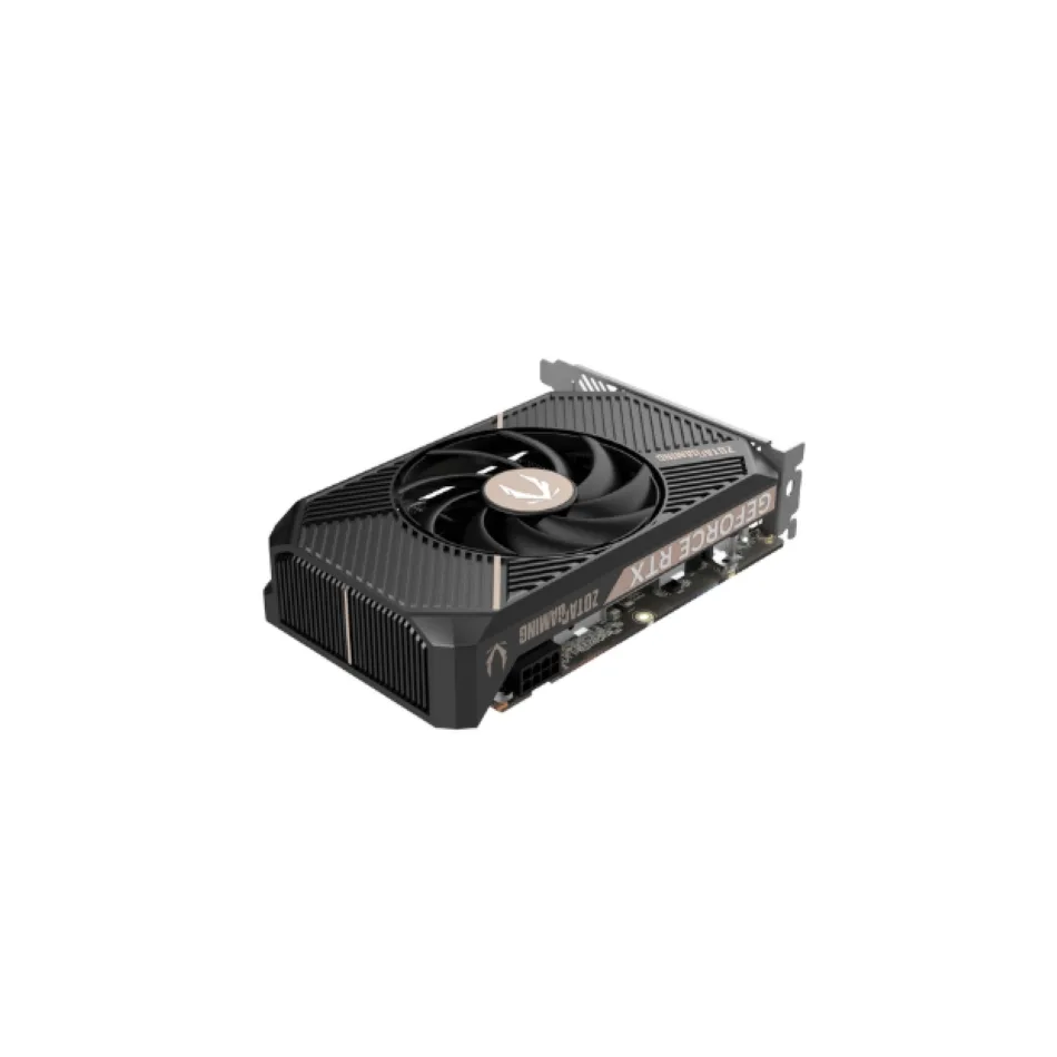 La Zotac RTX 5050 SOLO está construida para durar. Cuenta con un diseño robusto que incluye una placa posterior de metal para mayor rigidez y durabilidad. Su ventilador BladeLink ha sido diseñado para optimizar el flujo de aire, manteniendo la tarjeta fresca y silenciosa incluso bajo las cargas más pesadas.