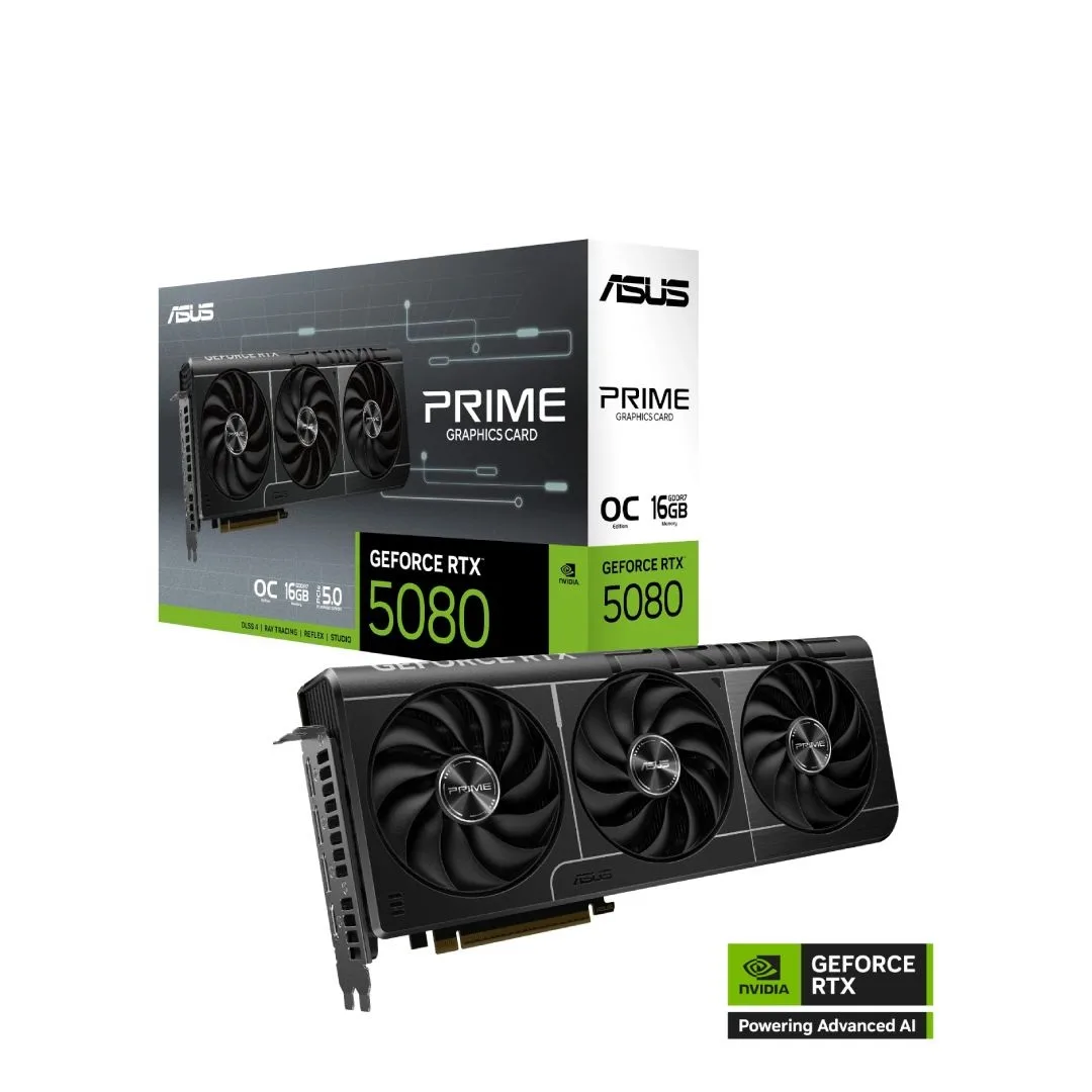 Tarjeta de Video – ASUS PRIME GeForce RTX 5080 16GB GDDR7 OC Edition – 16 GB GDDR7 (256 bit) – PCI-E 5.0 – DisplayPort/HDMI
